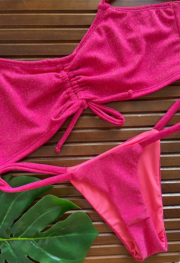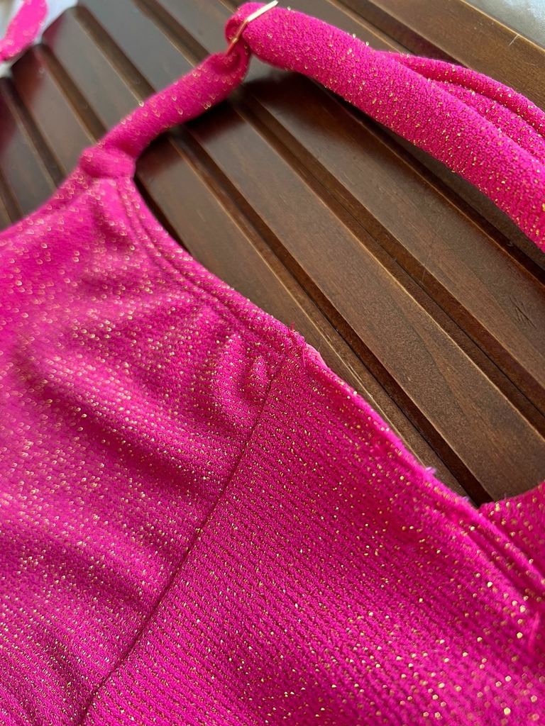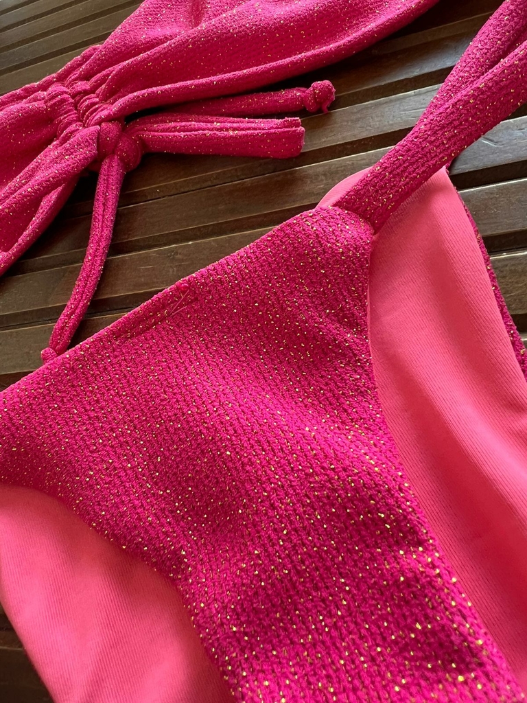 O lurex adiciona um toque de luxo, transformando um simples dia na praia em uma experiência glamorosa. Este biquíni não é feito apenas para ser visto; é feito para ser notado. Deixe sua presença brilhar tão intensamente quanto os raios do sol refletindo na água.